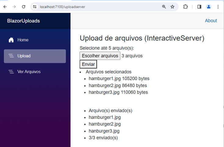 Vamos criar na pasta Components/Pages o componente UploadServer.razor que vai enviar arquivos para o servidor: