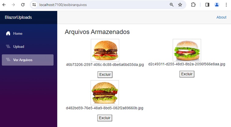 A seguir vamos criar o componente ExibirArquivos.razor usando o seguinte código: