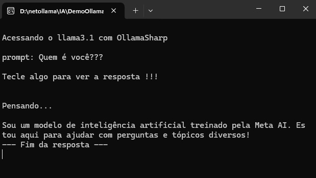 Para mostrar o uso do OllamaSharp vamos acessar o LLM llama3.1 da Meta localmente.
