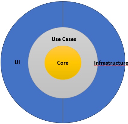Os aplicativos que seguem o Princípio de Inversão de Dependência e os princípios de Design Orientado a Domínio (DDD) são chamados de arquitetura limpa. Com uma arquitetura limpa, as camadas de Domínio e de Aplicativo/APl estão no centro do design. Isso é conhecido como o núcleo do sistema da Arquitetura Limpa.