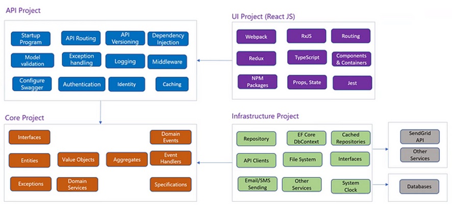 Considerando um projeto ASP.NET Core Web API que é consumida por uma aplicação React temos a seguir a estrutura básica que pode ser considerada: