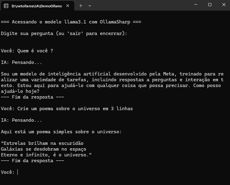 uma aplicação em C# de forma muito simples, utilizando o OllamaSharp que é um