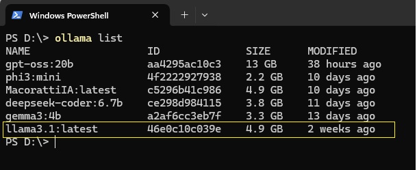 Obs: Neste exemplo vou acessar o LLM llama31:latest instalado localmente no meu ambiente: