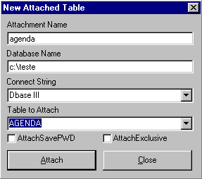 Table to Attach  - Nome do arquivo DBF a anexar.(Agenda.dbf)