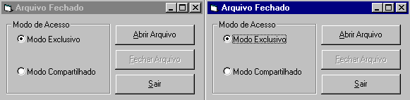 quando da abertura de arquivos em modo exclusivo e compartilhado em ambiente