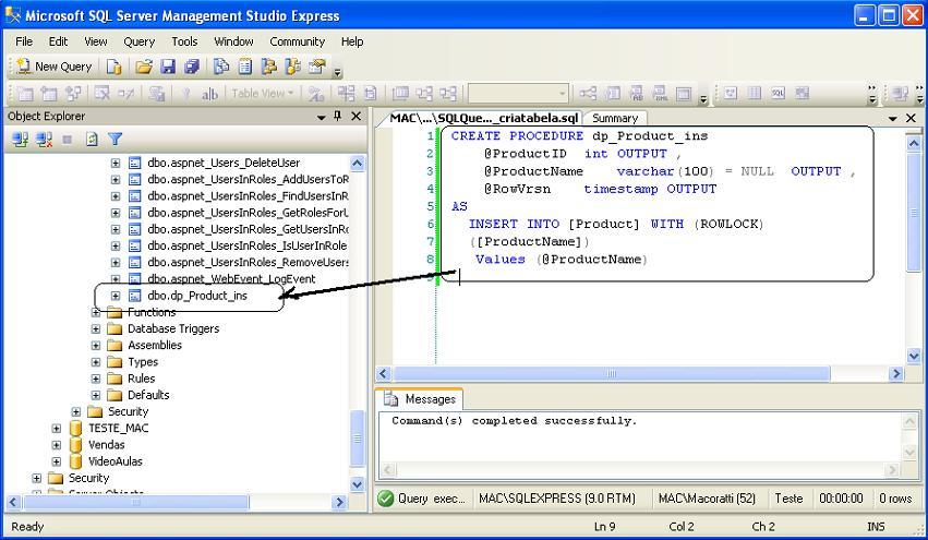2- Criando a stored procedure de inclusão dp_Product_ins