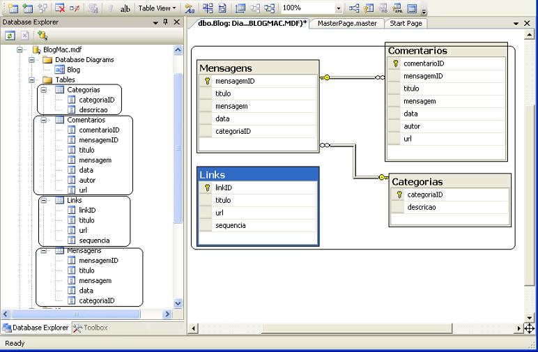 Após criar o banco de dados BlogMac.mdf , vamos criar 4 tabelas: