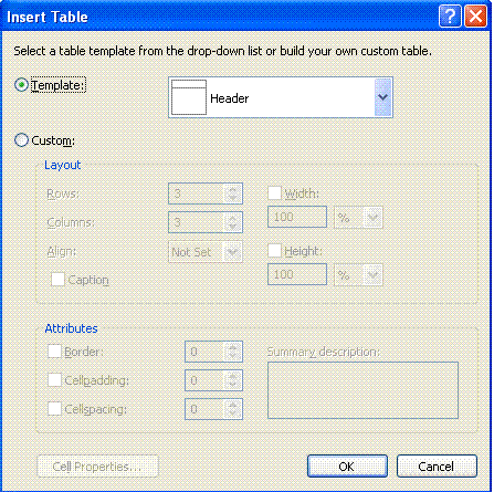 No menu Layout selecione Insert Table e selecione o template Header: