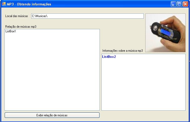 Nota: Devemos informar o nome do diretório informando o local de localização dos arquivos MP3. (Use um componente OpenFileDialog para automatizar esta tarefa)