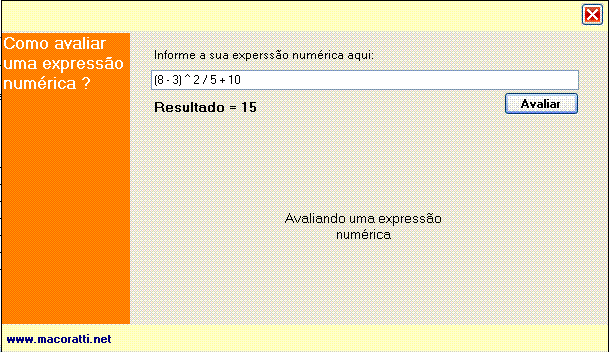 Um programa muito simples com código ao estilo VB que avalia expressões numéricas básicas: