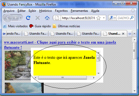 | <div> <span class="style1"> <a id="linkTexto" href="#inlineConteudoID"><strong>ww.macoratti.net - Clique aqui para exibir o texto em uma janela flutuante !</strong></a></span> </div> |