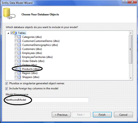 A entidade Product será criada e o arquivo Northwind.edmx irá conter o mapeamento ORM entre a entidade e a tabela Products;