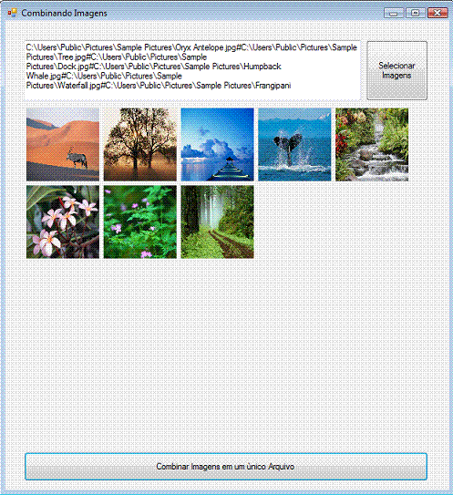 No evento Click do botão de comando btnCombinarImagens temos o código que obtém os arquivos selecionados e salva as imagens combinadas: