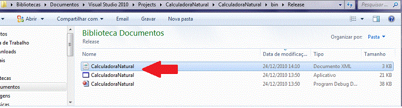 Dessa forma quando compilarmos a aplicação será gerado o arquivo CalculadoraNatural.xml na pasta /bin/Release do projeto;