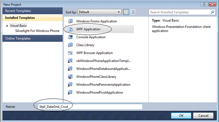 Abra o Visual Basic 2010 Express Edition e crie uma nova aplicação WPF com o nome: Wpf_DataGrid_Crud;