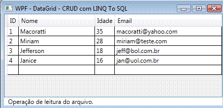 Neste tutorial eu vou mostrar como realizar as operações CRUD em uma aplicação WPF com DataGrid usando o Linq TO SQL.
