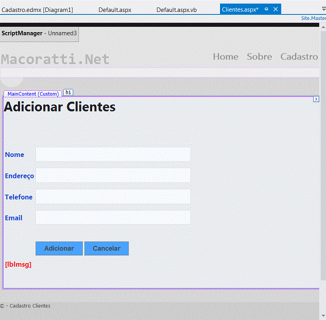 Vamos agora definir o código no arquivo code-behind Clientes.aspx.vb conforme abaixo: