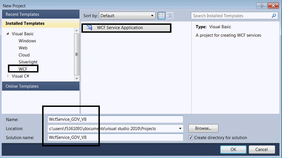 A seguir crie o projeto WCF usando o VWD 2010 com o nome WcfService_GDV_VB;