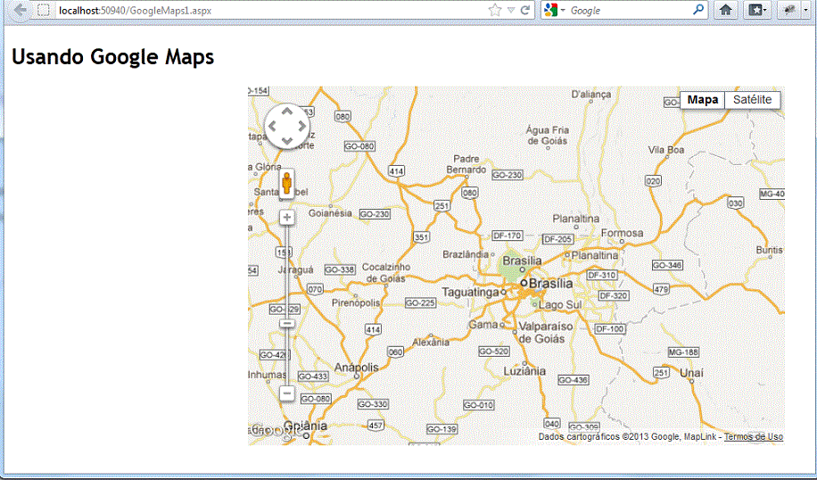 A seguir inclua o código abaixo no arquivo GoogleMaps1.aspx no modo Source: