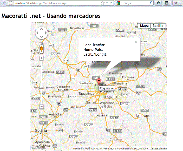 Abaixo vemos o resultado exibindo o marcador e a caixa de texto quando o usuário clica sobre o marcador: