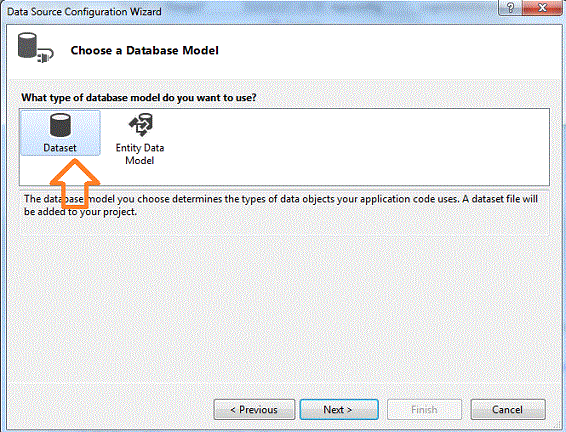 A seguir selecione a tabela Acessos, aceite o nome LoginDataSet e clique no botão Finish;