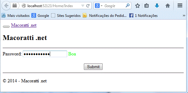 MVC - Validação da força da senha usando jQuery