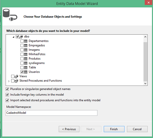 A seguir selecione a tabela Usuarios que foi criada no início deste artigo e aceite o nome padrão para Model e marque as opções conforme mostra a figura abaixo: