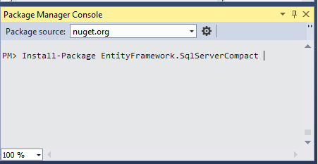 No console digite o seguinte comando: Install-Package EntityFramework.SqlServerCompact