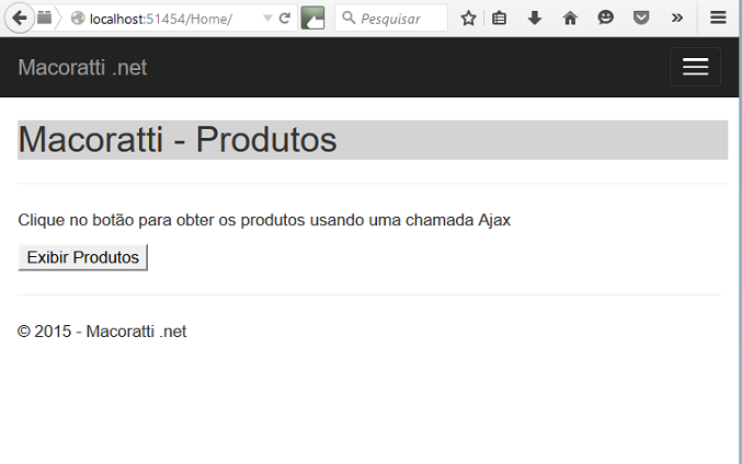 <input id="btnAjax" name="btnAjax" type="button" value="Exibir Produtos" />