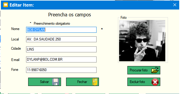 2 - Edição de dados com opção de incluir/alterar imagem