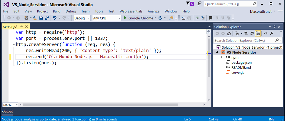Visual Studio - Iniciando com Node.js - Criando um sevidor ... - Macoratti