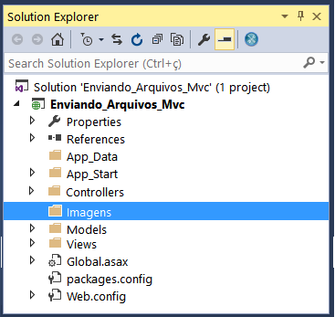 Vamos criar em nosso projeto a pasta Imagens onde iremos salvar os arquivos enviados.