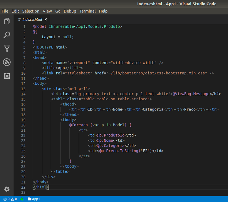 Vemos acima o projeto aberto no VS Code no Linux e o arquivo de projeto .csproj mostrando as referências.