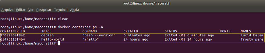 Vemos o nosso contêiner criado com o nome macdeb atribuído.