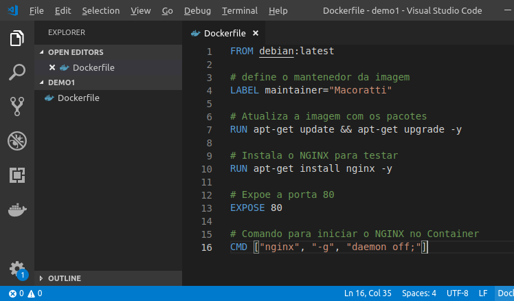 Abaixo temos o código usado no aquivo Dockerfile: