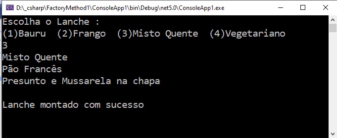 Pronto, agora para poder criar objetos de cada tipo de lanche vamos definir o código a seguir no método Main que representa o Cliente: