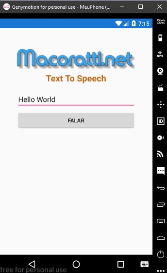 A classe TextToSpeech permite que um aplicativo utilize os mecanismos internos de conversão de texto em fala para repetir o texto do dispositivo e, também, consultar os idiomas disponíveis, compatíveis com o mecanismo.