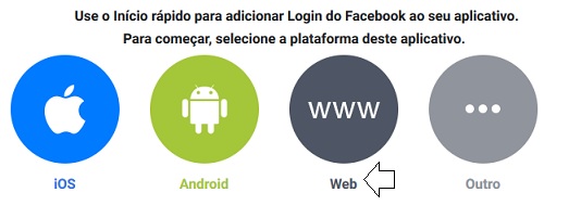 Em adicionar um produto, clique em Login do Facebook e selecione selecione a plataforma Web: