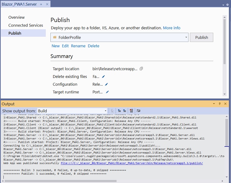 Clique com o botão direito do mouse no projeto Server Blazor_PWA1.Server e selecione Publish;