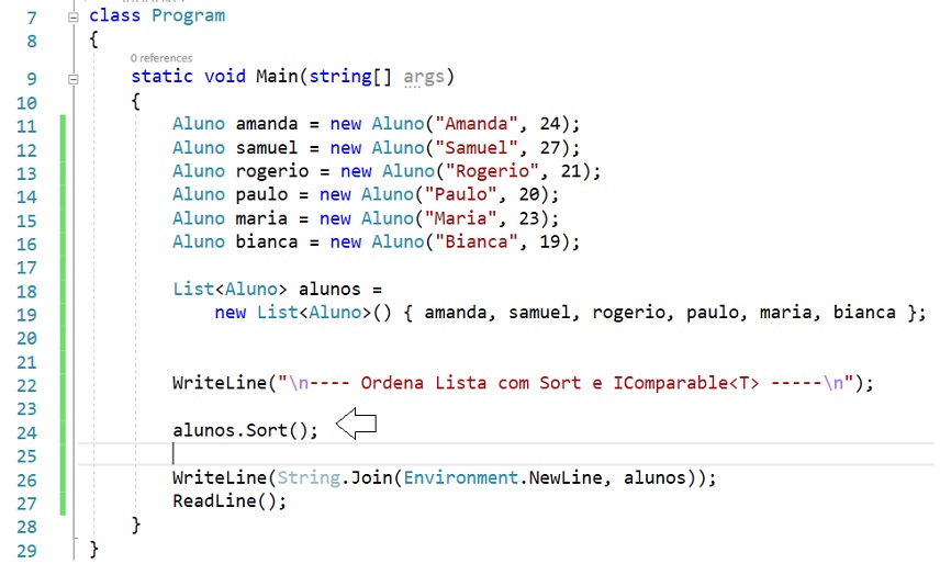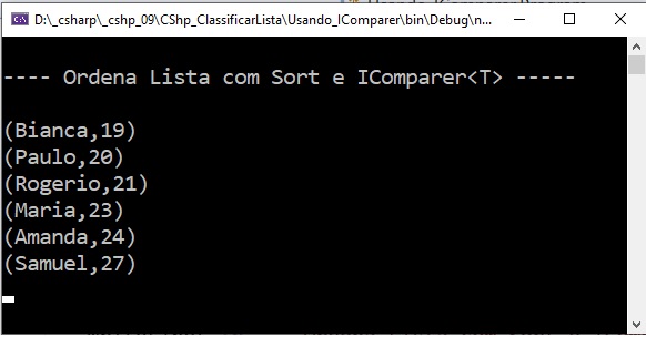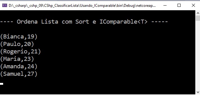 A seguir podemos usar a classe AlunoComparer() para realizar a ordenação :
