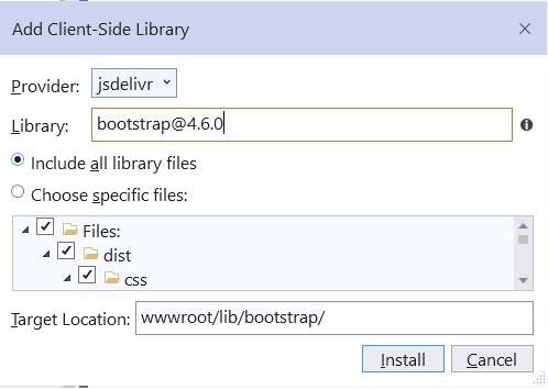 Ao final podemos conferir na janela Solution Explorer na pasta wwwroot/lib/ a instalação das bibliotecas: