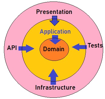 O Domain é a camada mais interna, enquanto Infrastructure + Presentation é a camada mais externa.