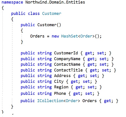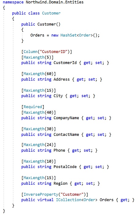 A seguir, vamos remover as anotações de dados da entidade Customer e, em vez disso, usaremos um tipo de configuração especial em um arquivo separado: