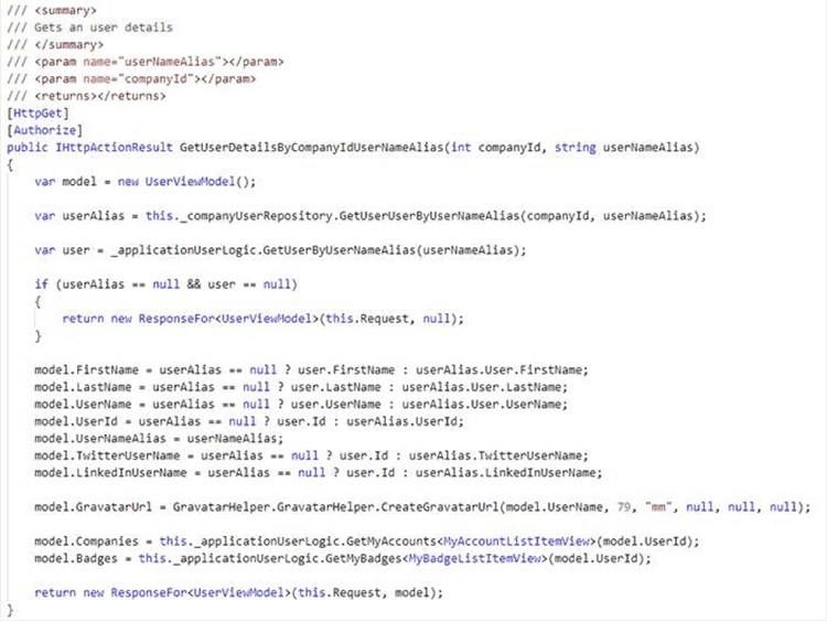 Ao construir aplicações ASP.NET Core MVC, isso normalmente significa que a lógica de negócios é adicionada aos controladores de acordo com o seguinte exemplo: