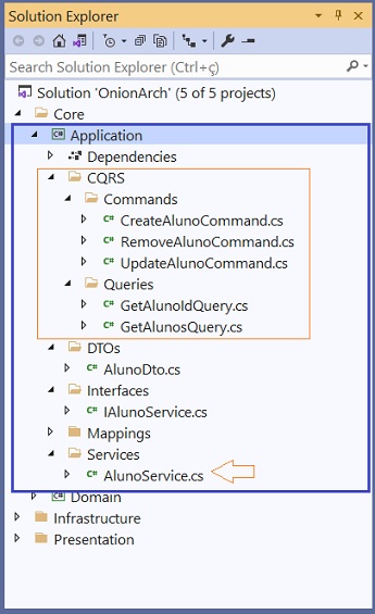 Assim temos os comandos e consultas implementadas e também o serviço, e, podemos partir para a definição da camada de apresentação.