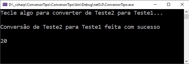Console.WriteLine("Conversão de Teste2 para Teste1 feita com sucesso\n");
