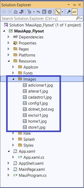 Vamos incluir na pasta Resources/Images do projeto as imagens que iremos usar nas páginas :