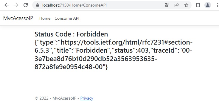 receberemos um 403 Forbidden, devido ao nosso filtro Action.