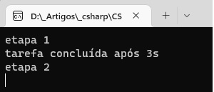 Quando a operação assíncrona for concluída, o operador await retornará o resultado da operação, se houver.