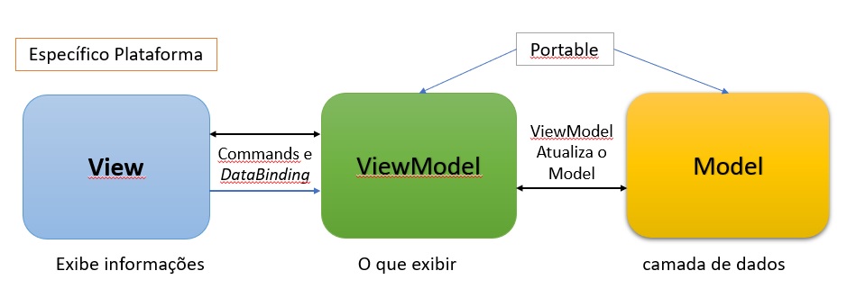 Essa abordagem funciona mas nos trás muito problemas quando precisamos testar nossas aplicações. Esse é um dos motivos da utilização do padrão MVVM. Então para contornar esse problema usamos a abordagem MVVM onde o DataBinding é feito praticamente no código XAML usando as propriedades BindingContext e Binding.